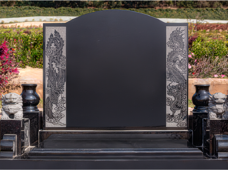 豪华碑型:提供精选优质石材(如进口黑金沙花岗岩/汉白玉)的豪华碑型,雕刻工艺精湛,碑面设计大气尊贵,可个性化定制家族标识或纪念图案,彰显对先人的至高敬重与家族的荣耀传承。